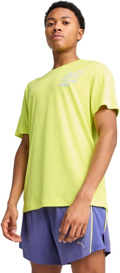 Elevate your run with the PUMA Men’s Running Graphic T-Shirt, featuring dynamic, runner-inspired graphics. Made from soft, breathable fabric, it combines comfort with fashion-forward design and proudly displays the iconic PUMA logo, symbolizing the brand’s rich heritage in athletic excellence and modern style.”