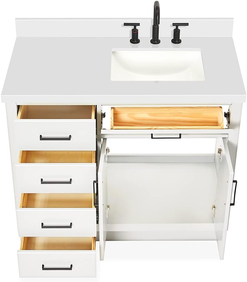 | Additional Features | Double-Polished, Sealed Quartz or Marble Countertop, Dovetail Construction, Soft Closing Doors & Drawers, Solid Hardwood Construction, UPC-certified Porcelain Sink |